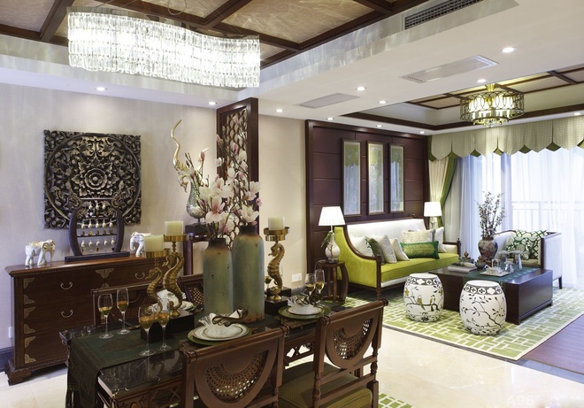 南寧億鼎中心毛坯房96平米中式風(fēng)格裝修案例效果圖
