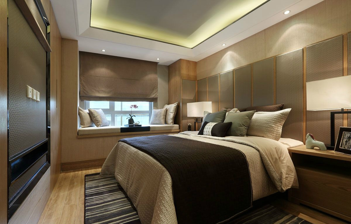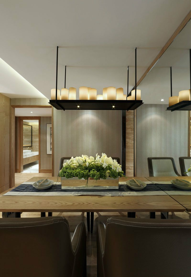 這套后現(xiàn)代風(fēng)格的氛圍偏向于成熟穩(wěn)重,因?yàn)閼粜妥銐虼?,所以就算是用深色作為主色調(diào),也不會(huì)顯得狹小逼仄。吊頂藏光的設(shè)計(jì),以及各式各樣的燈具,給整個(gè)空間增添了不少層次感。