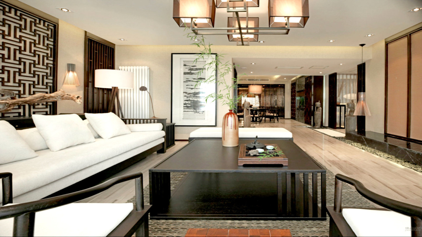 南寧國悅·九曲灣毛坯房97平米中式風格裝修案例效果圖