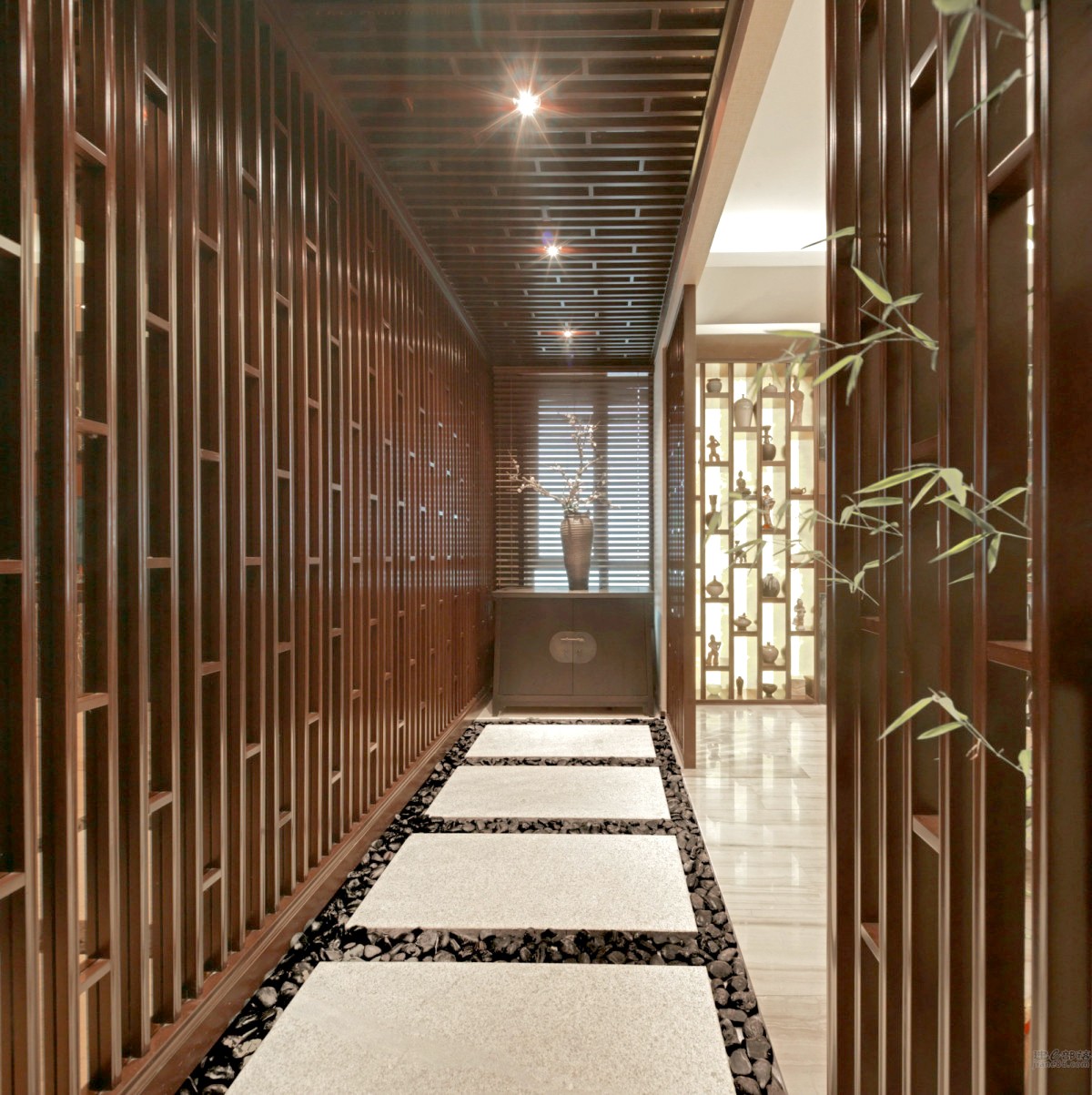 這是業(yè)主為父母準備的養(yǎng)老房,因為老人家比較喜歡中式風格,所以在裝修上以傳統中式為主,適當添加一些現代元素,打造了這樣一份獨一無二的家居環(huán)境。走廊處的設計最有意思,一整排鏤空的隔斷,頗有一種穿越的感覺。