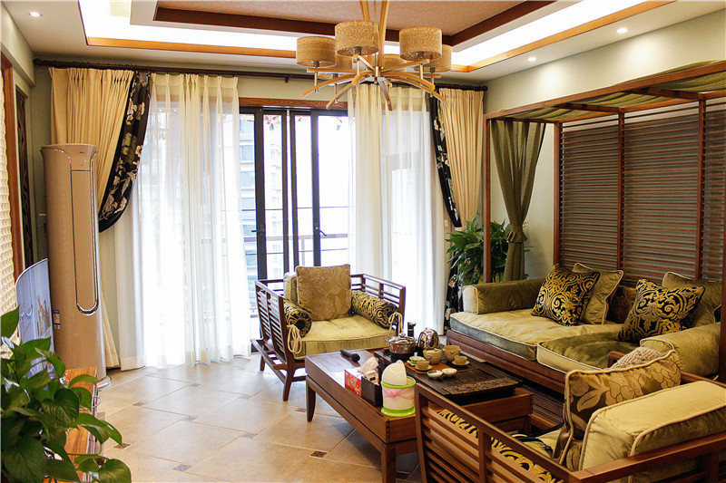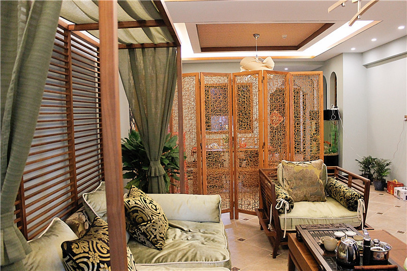 南寧億鼎中心毛坯房96平米中式風格裝修案例效果圖
