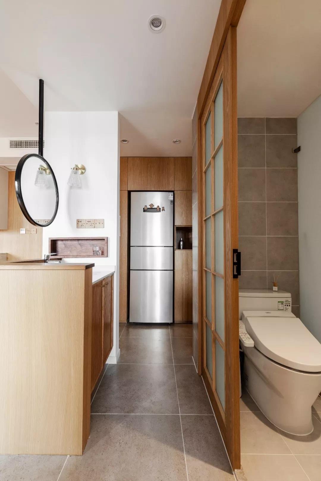 原木風(fēng)是日式風(fēng)格最大的特色之一,簡(jiǎn)單的色調(diào)不管放在什么時(shí)候看,都不會(huì)過(guò)時(shí)。三分離的衛(wèi)生間大概是這個(gè)房子里最花費(fèi)設(shè)計(jì)師心思的地方之一,洗手盆上方垂下一個(gè)雙面鏡,增加了空間的開闊感。