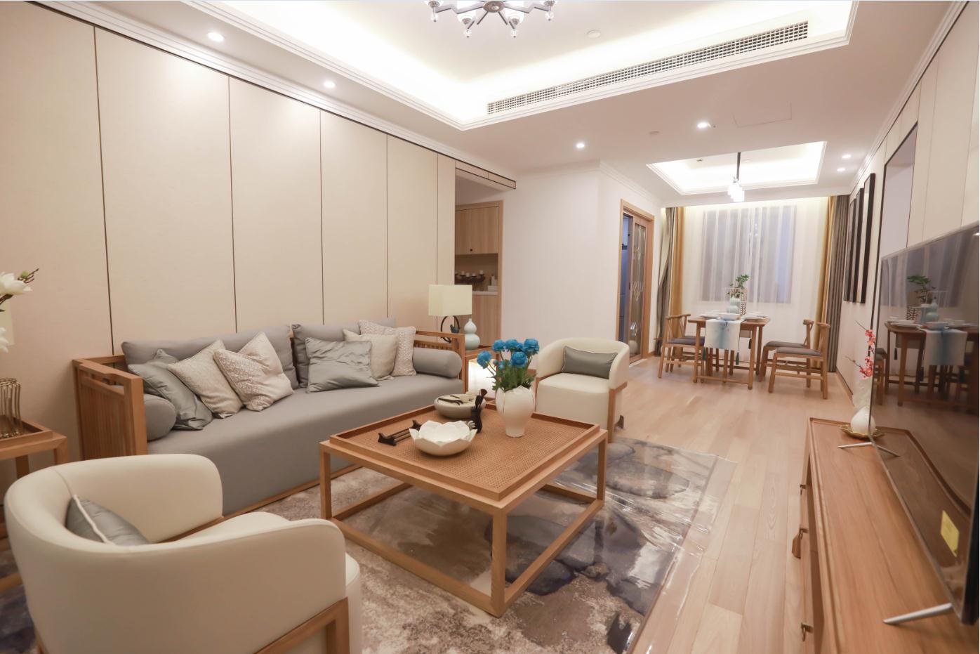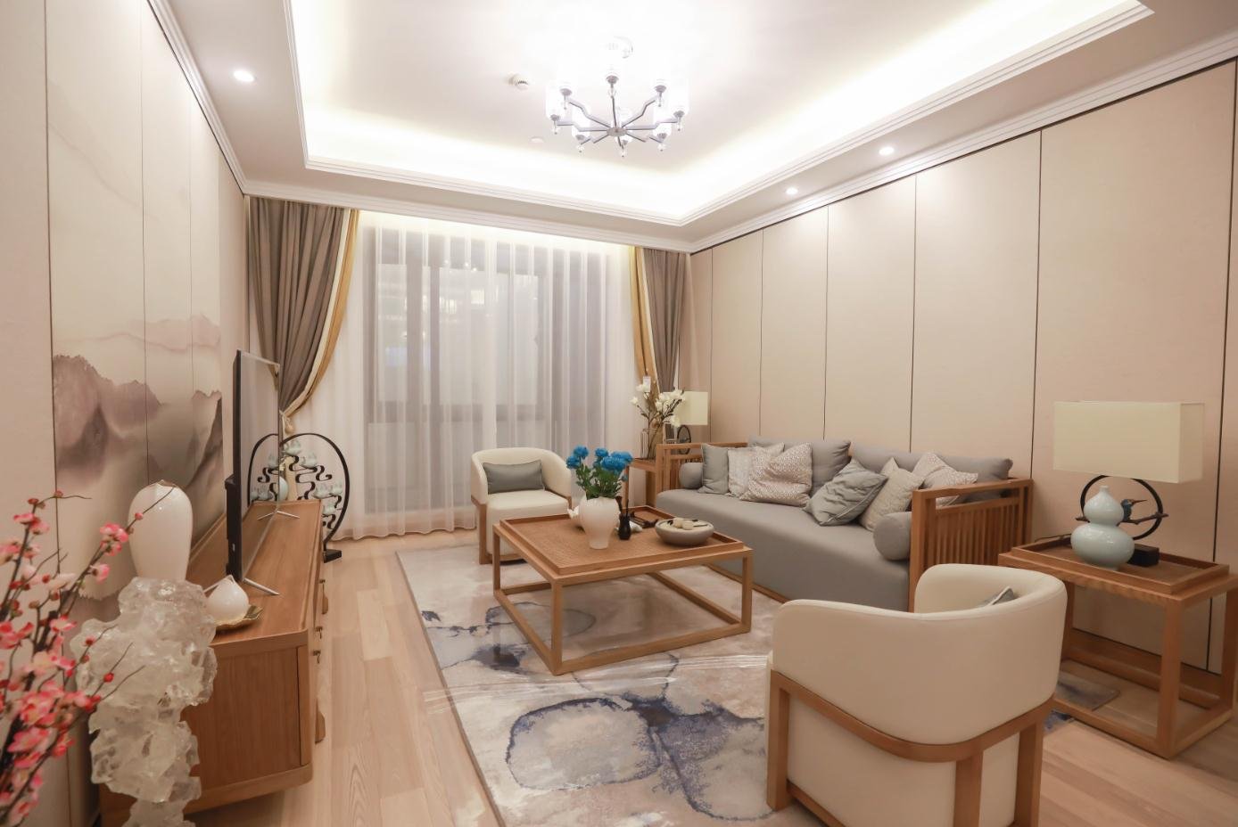 南寧嘉印象毛坯房84平米新中式風(fēng)格裝修案例效果圖