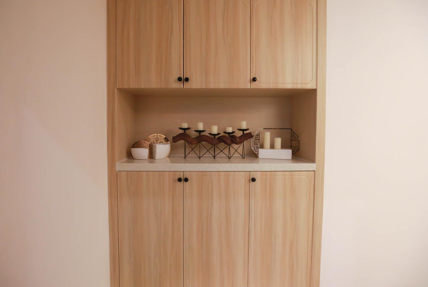 中式風(fēng)格的古色古香與現(xiàn)代風(fēng)格的簡(jiǎn)約大方完美結(jié)合,不管是視覺上的美感還是使用上的便利,都得到了極大的滿足。淺木色的中式家具,素雅的造型總是能夠讓人聯(lián)想到“君子之居”這四個(gè)字。
