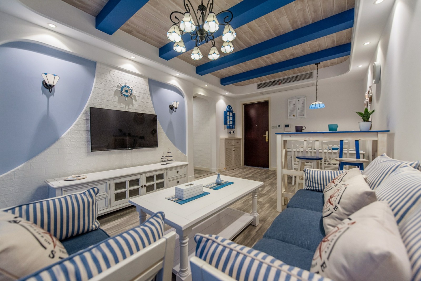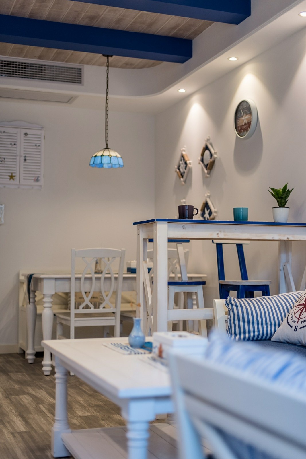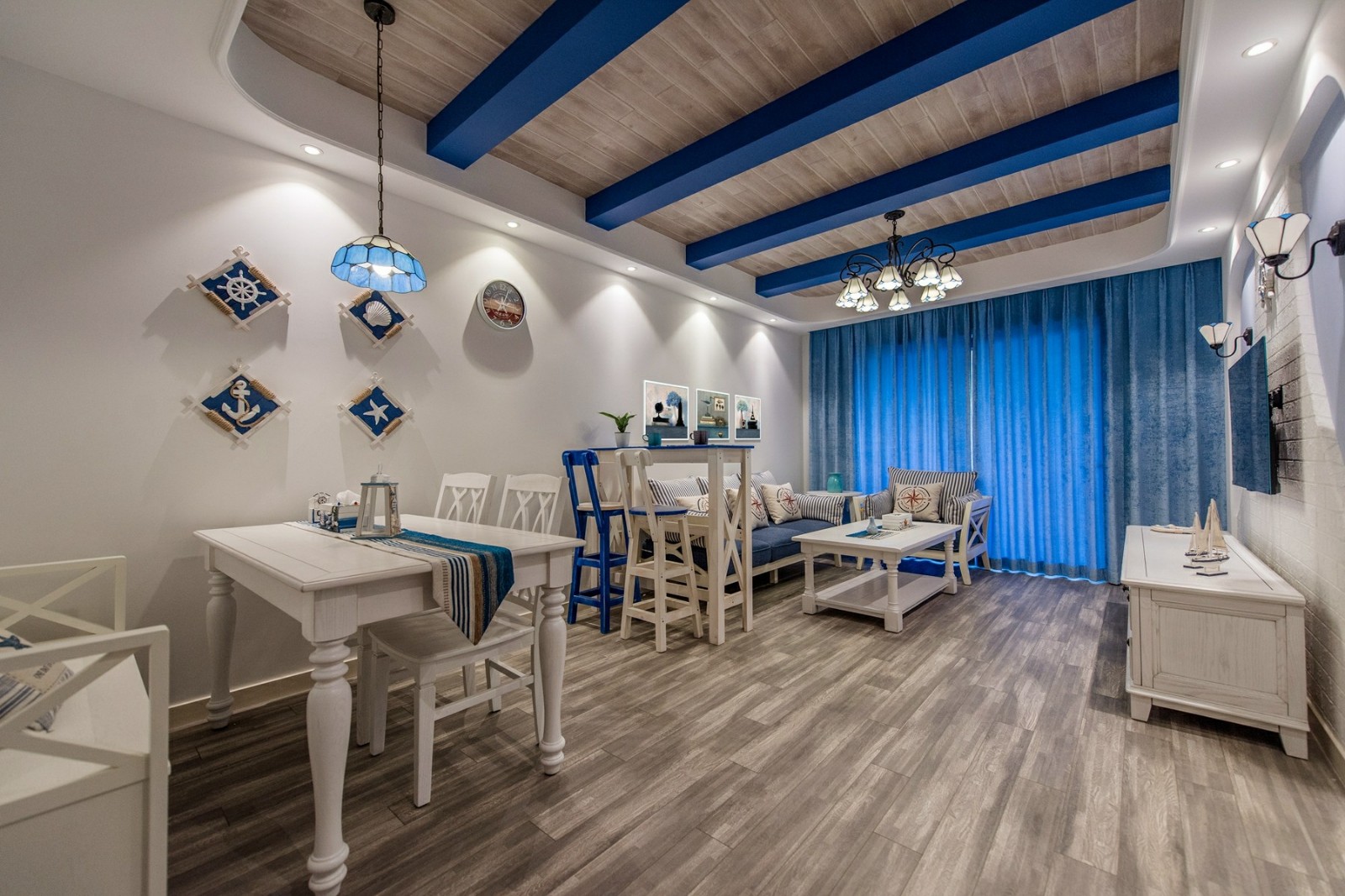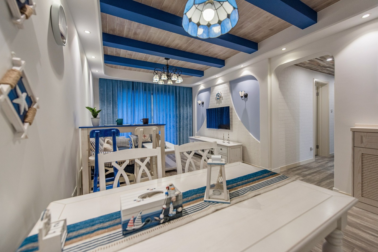 這一套地中海風(fēng)格的色調(diào)比較冷靜,每一處裝飾都恰到好處。精心選擇的氛圍燈,打造了一種浪漫的意境,整體是清爽的海洋風(fēng),很是舒適大氣。天花板的造型很是別致,木紋飾的吊頂搭配上藍(lán)色的橫條,簡(jiǎn)潔又具備著極強(qiáng)的設(shè)計(jì)感。