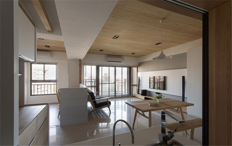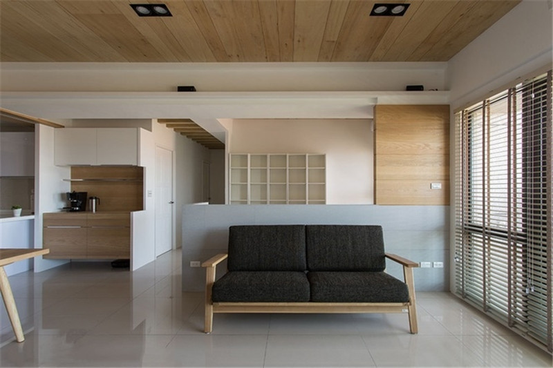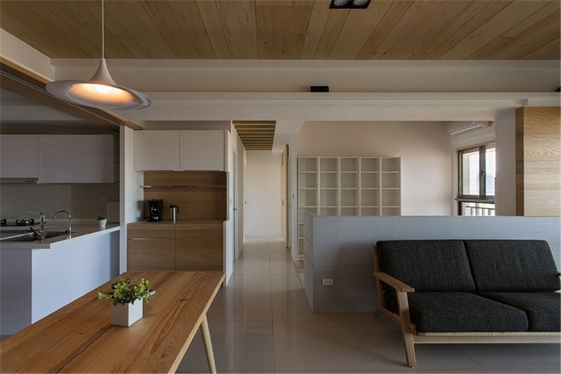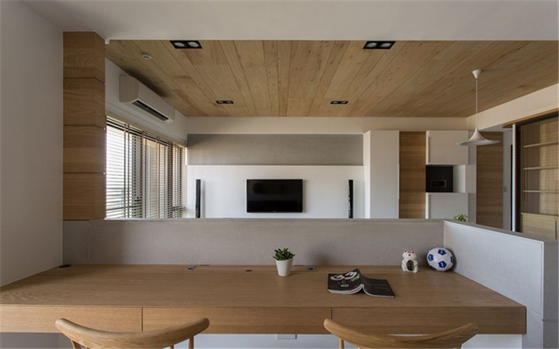 日式極簡(jiǎn)風(fēng)格的魅力在于,用最簡(jiǎn)單的排列與組合,打造出最舒適的家居空間。開(kāi)放式的書(shū)房就設(shè)置在沙發(fā)背后,通透的采光打造出了一個(gè)良好的工作環(huán)境,因?yàn)槠綍r(shí)只有業(yè)主夫妻倆在家,所以也不擔(dān)心會(huì)被打擾。