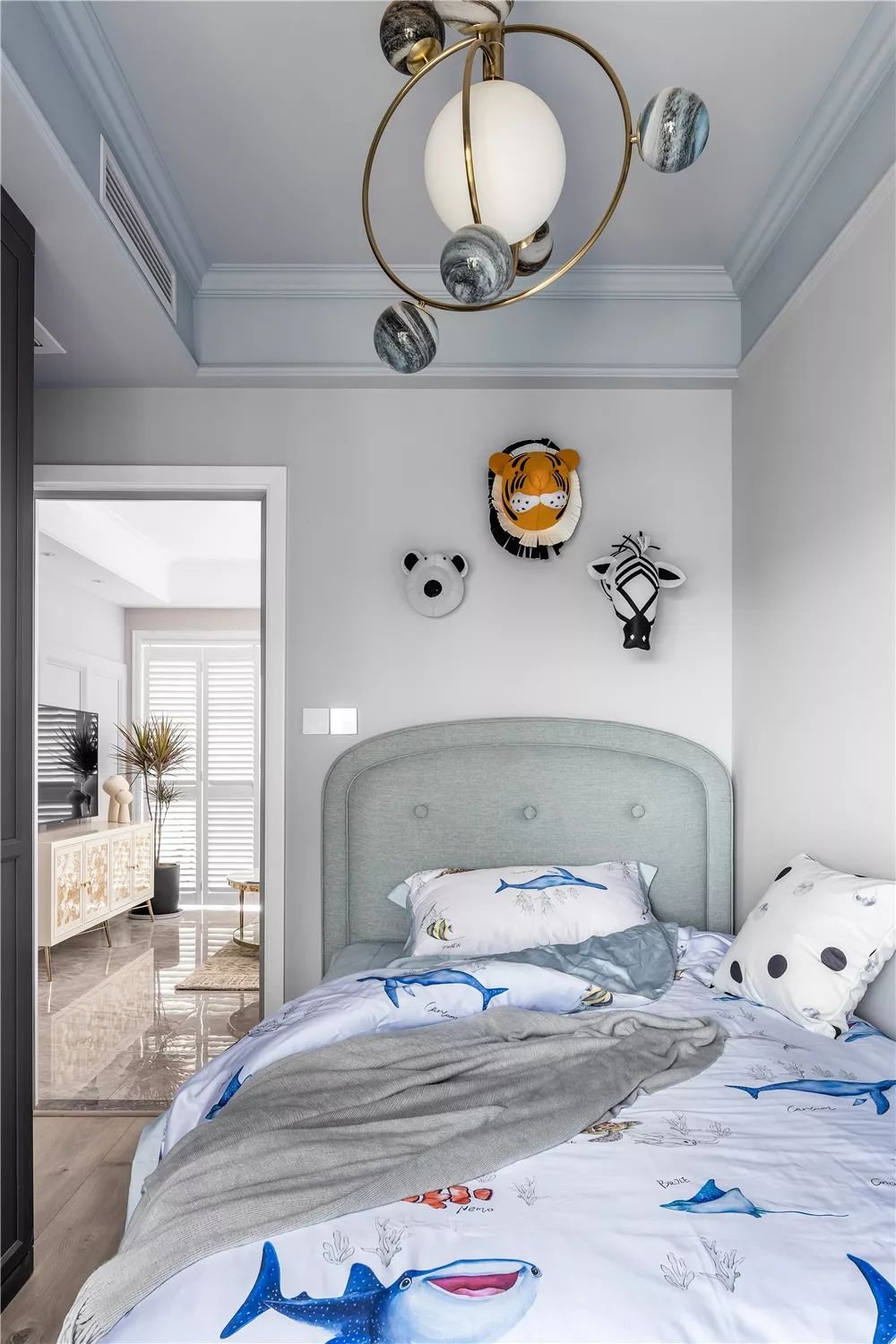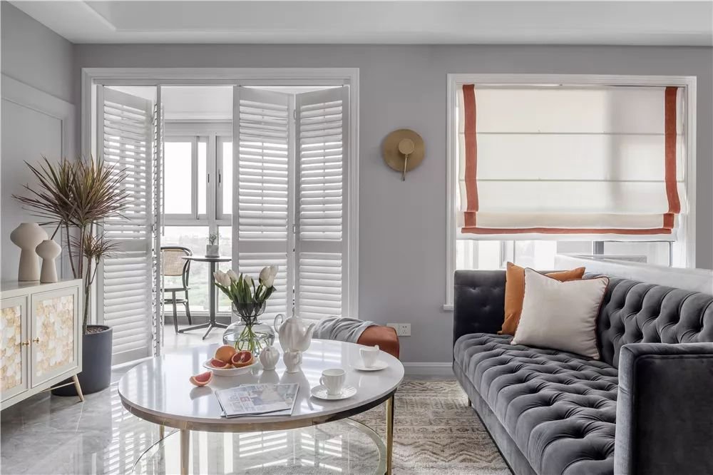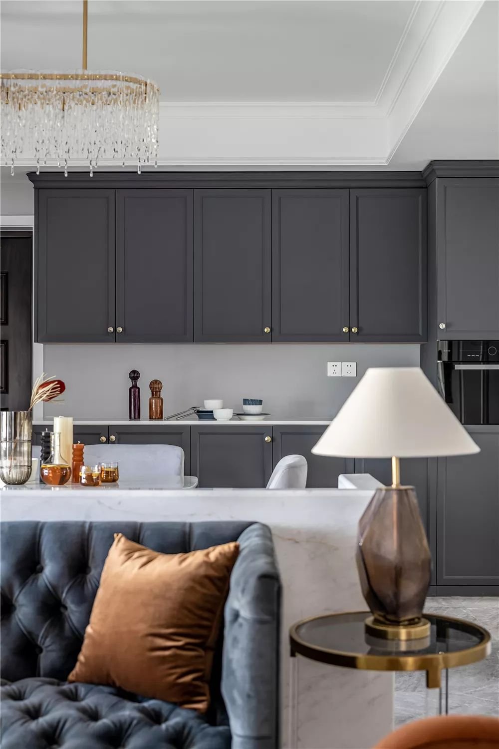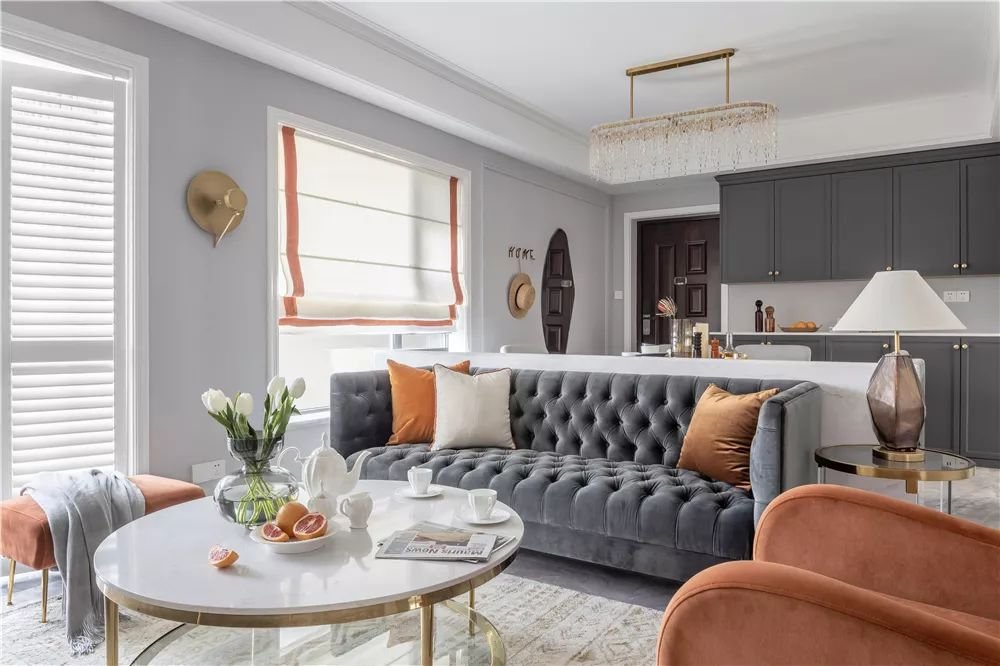 這是一套法式輕奢風(fēng)格的三居室,古典優(yōu)雅,質(zhì)感十足。客廳、餐廳和玄關(guān)同屬一個(gè)空間,所以風(fēng)格設(shè)計(jì)上要保證它的一致性。亮色的單人沙發(fā)和抱枕可以提亮整個(gè)空間,優(yōu)雅又不失活潑。