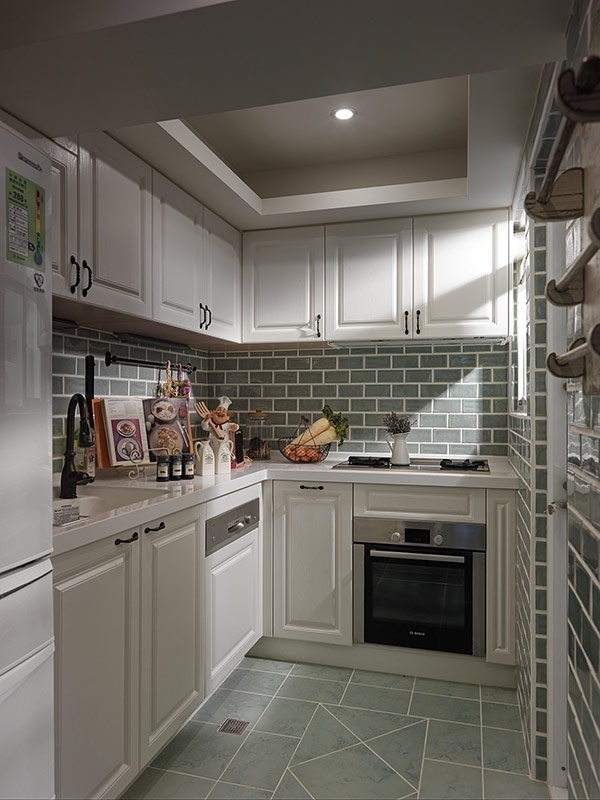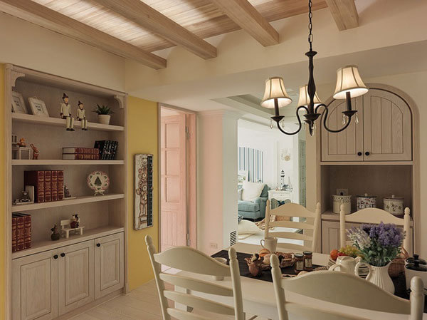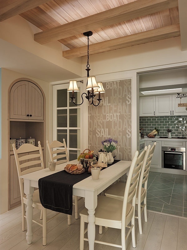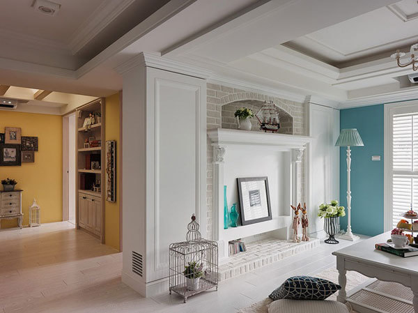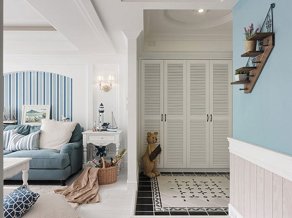 地中海風(fēng)格通常會用白色和藍(lán)色作為主色調(diào),但是在這套三居室里,設(shè)計師用白色做主色調(diào),藍(lán)色作為點綴,整體上看起來寬敞明亮、清新怡人。