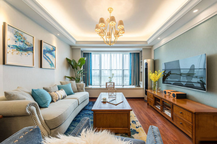 南寧海普·四季綠城毛坯房77平米地中海風(fēng)格裝修案例效果圖